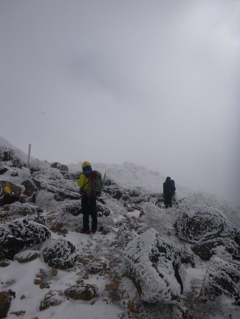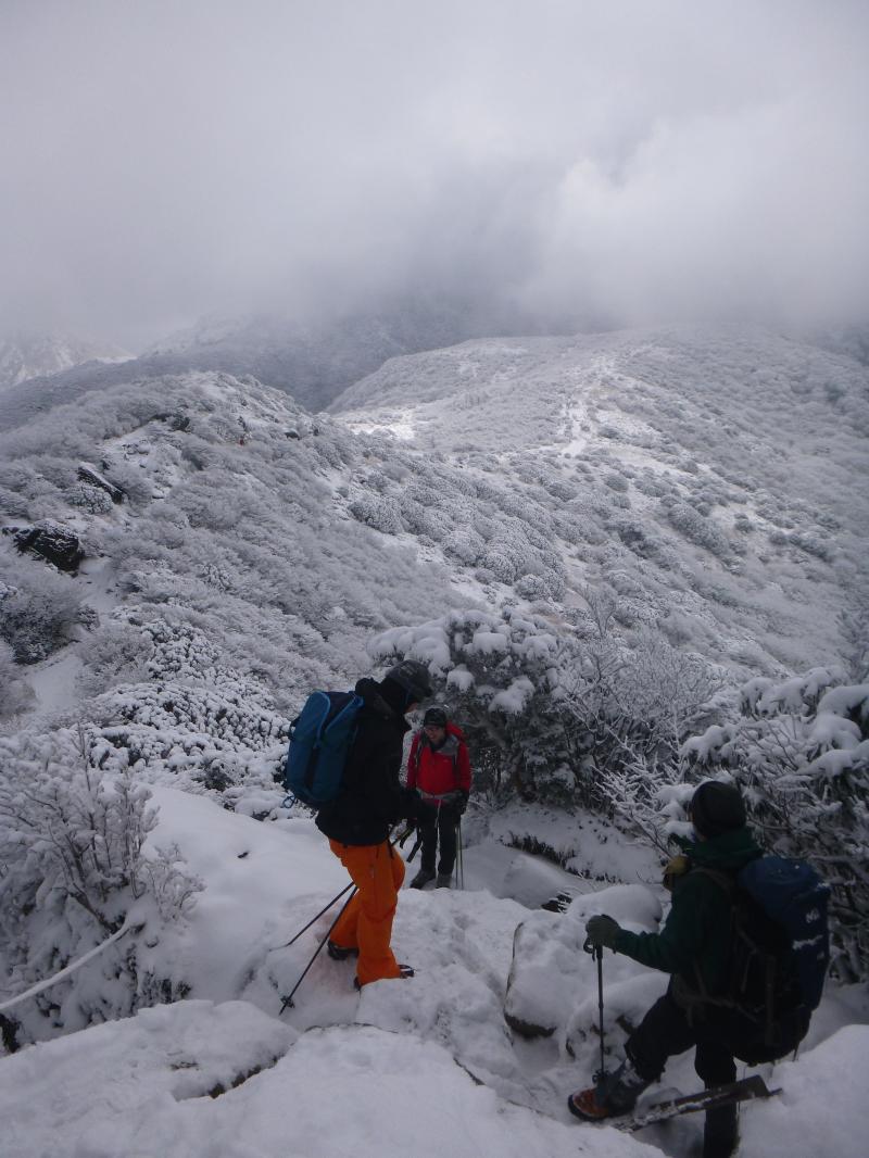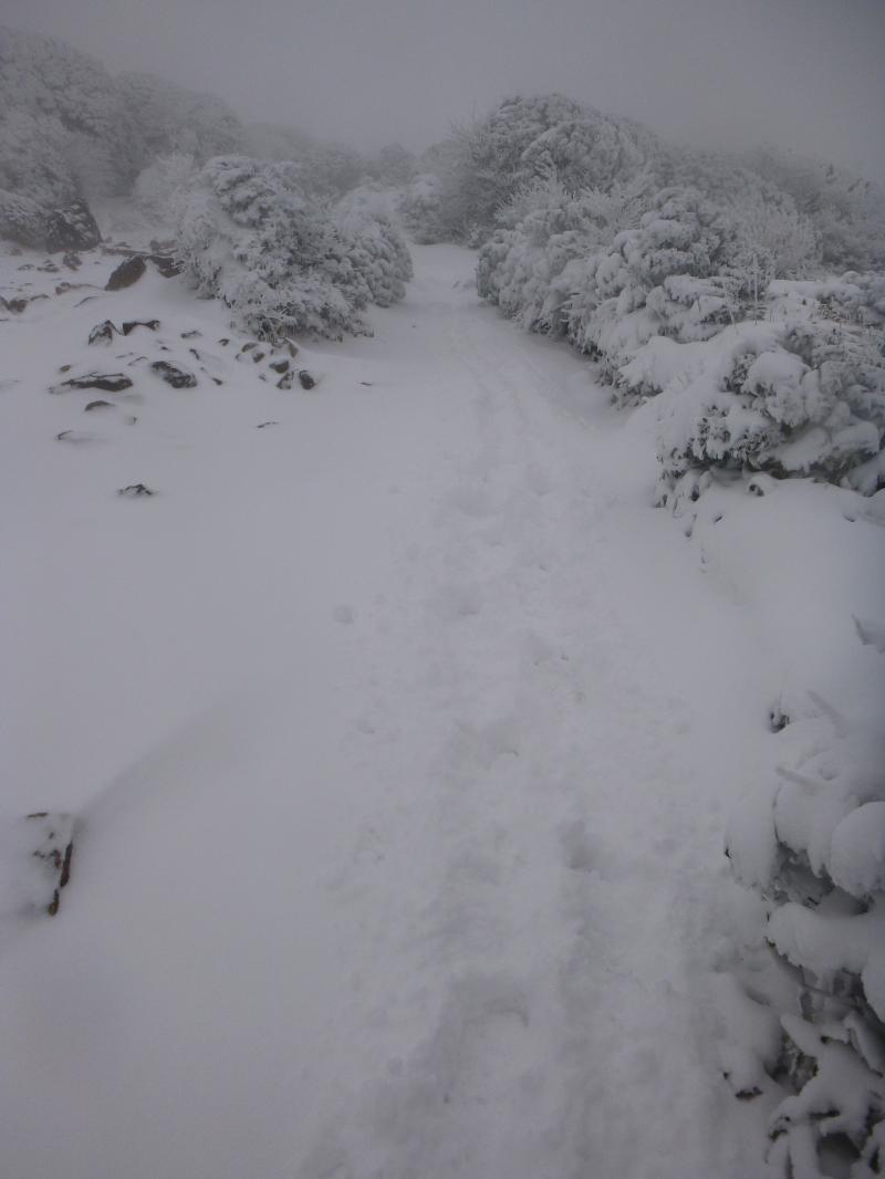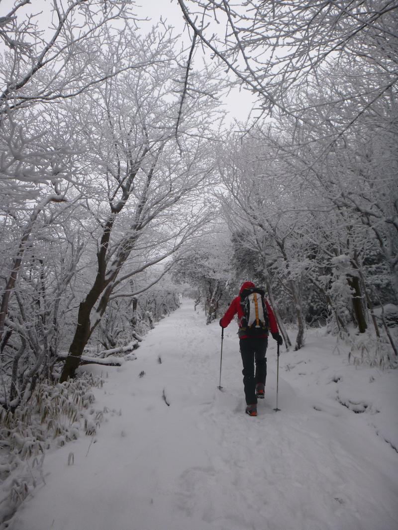 新雪も降っていた為、登山道は比較的歩きやすい雪道になっていました。