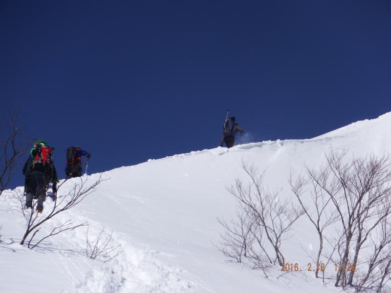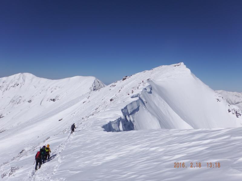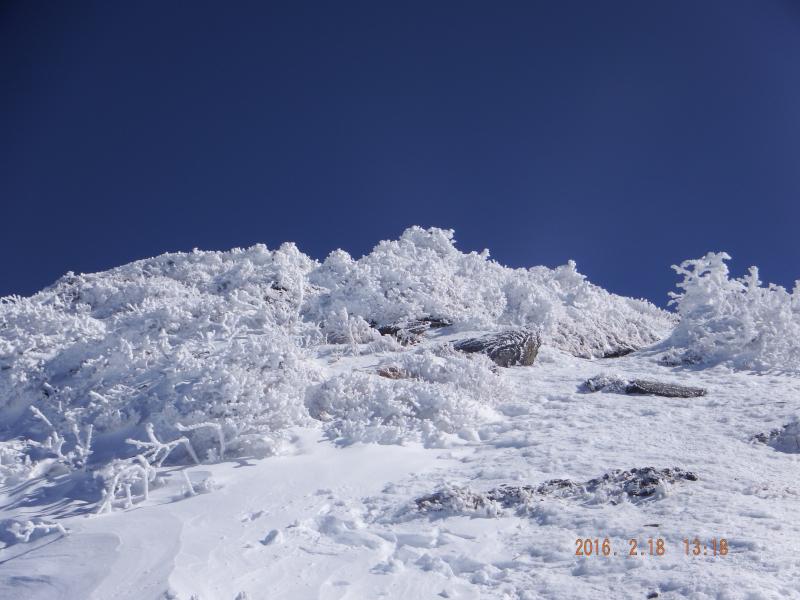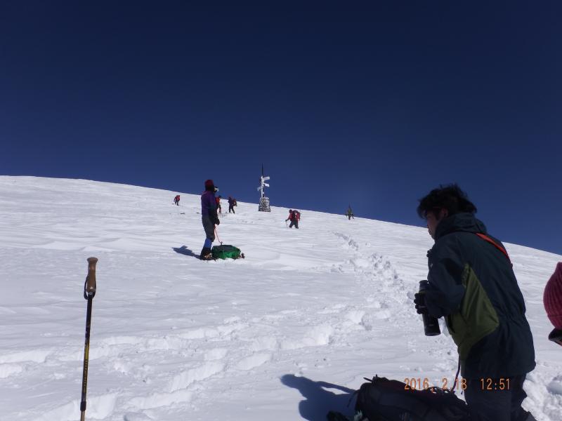 - コンディション良好。ロープウェイから降りてすぐトレースあり。登山者も多く、晴れていれば道迷いの危険は低い。積雪は例年に比べ少ない。今回はワカン、スノースューを使わずに歩けました。雪は深いところでもヒザくらい、ストックがあると便利でしょう。稜線に出ると風が強まります。バラクラバ、ゴーグルは念のため持っていきましょう。