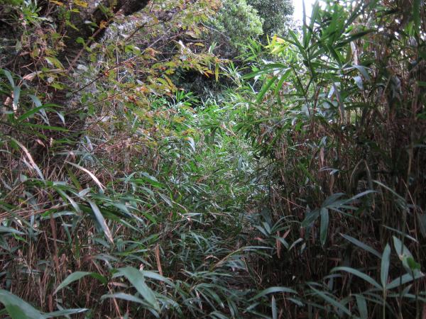 - 登山口から三差路までは、笹に視界を遮られてしまいます。