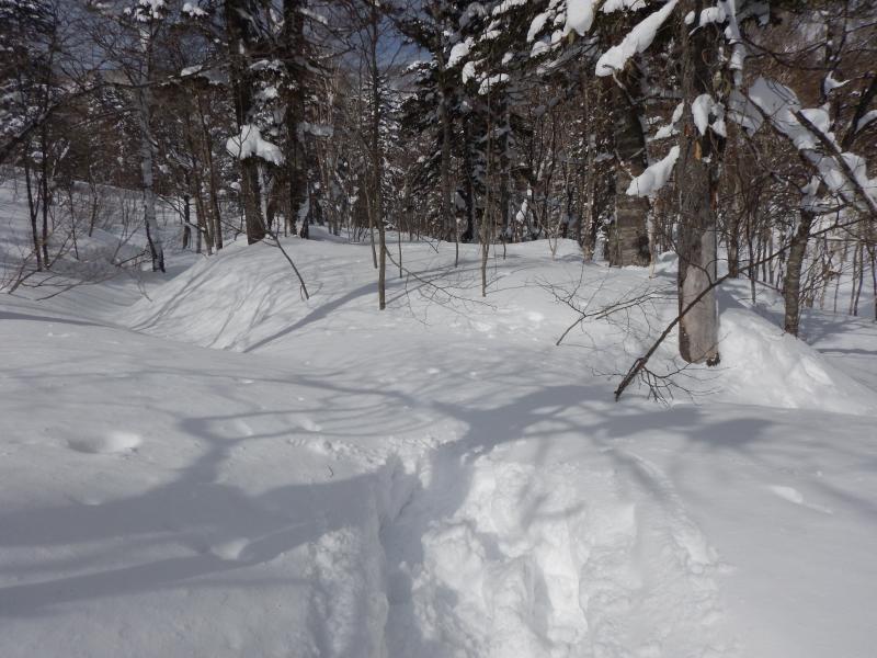 ロングルートとわかって準備していたのに朝寝坊のため出発時間が大幅に遅れたこと、昨晩の雪でトレースが全くなかったこと、何度も道に迷ったこと、先日の雨の影響で雪が少し重くなっていたこと。