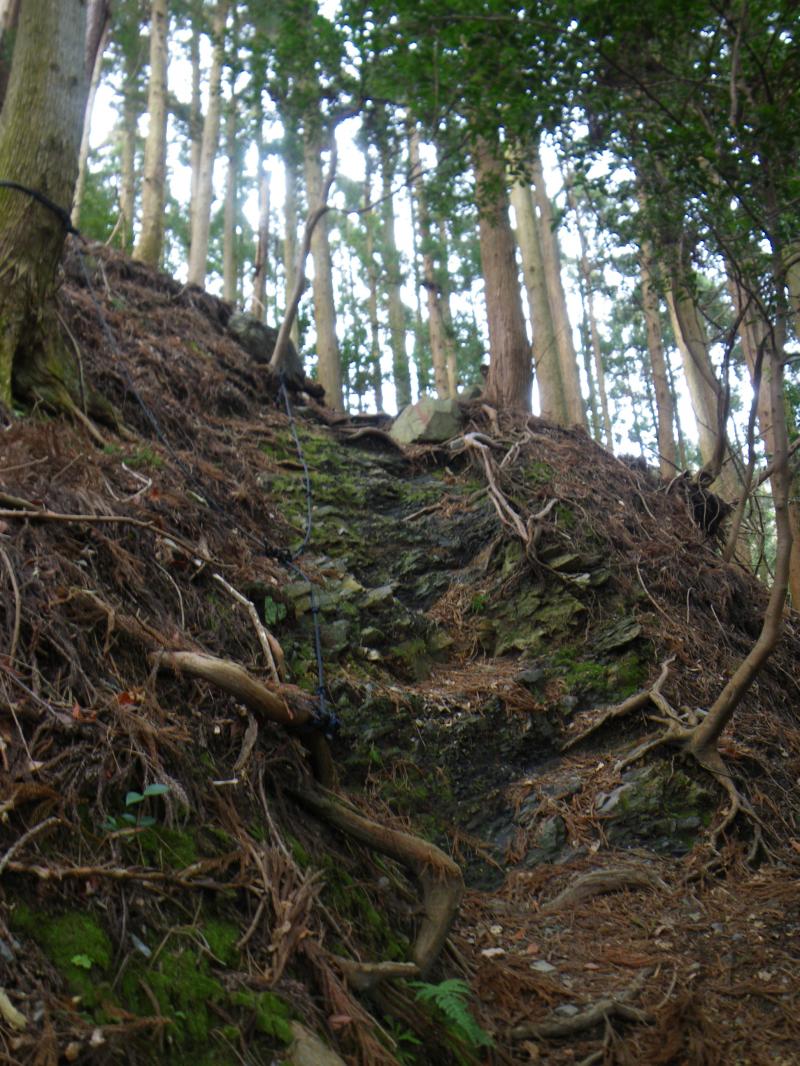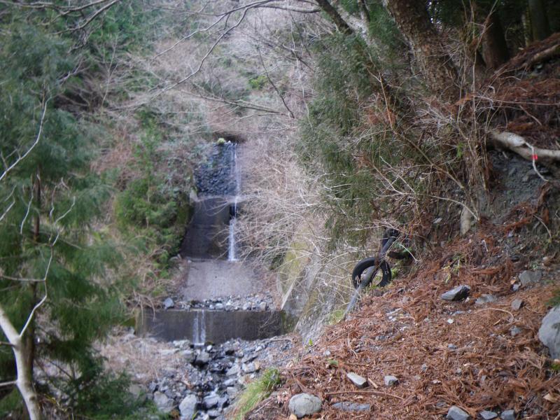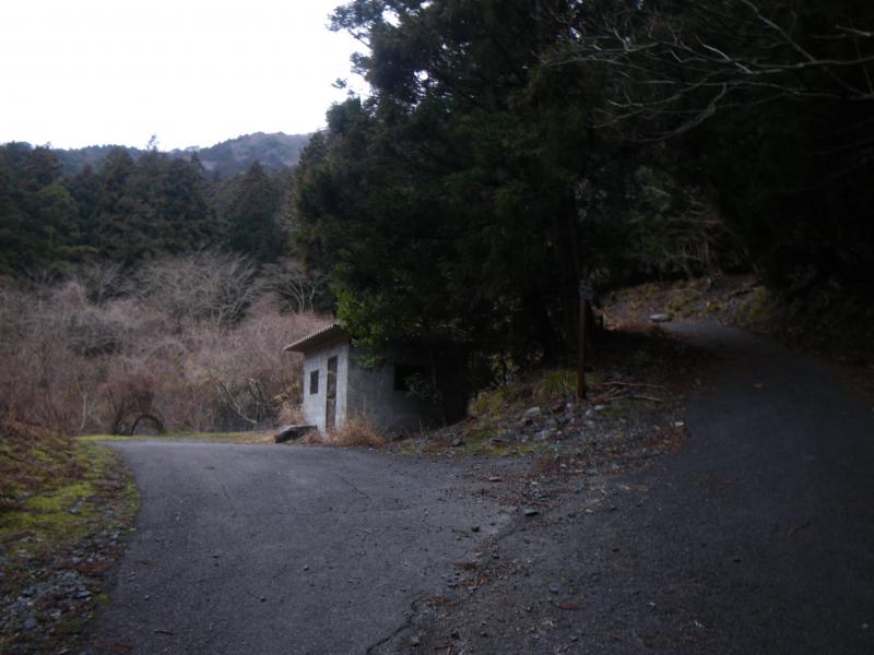 ➁椿キャンプ場上まで舗装路で、少しだけ未舗装の林道を歩くと登山口で井戸谷通報ポイント1に着きます