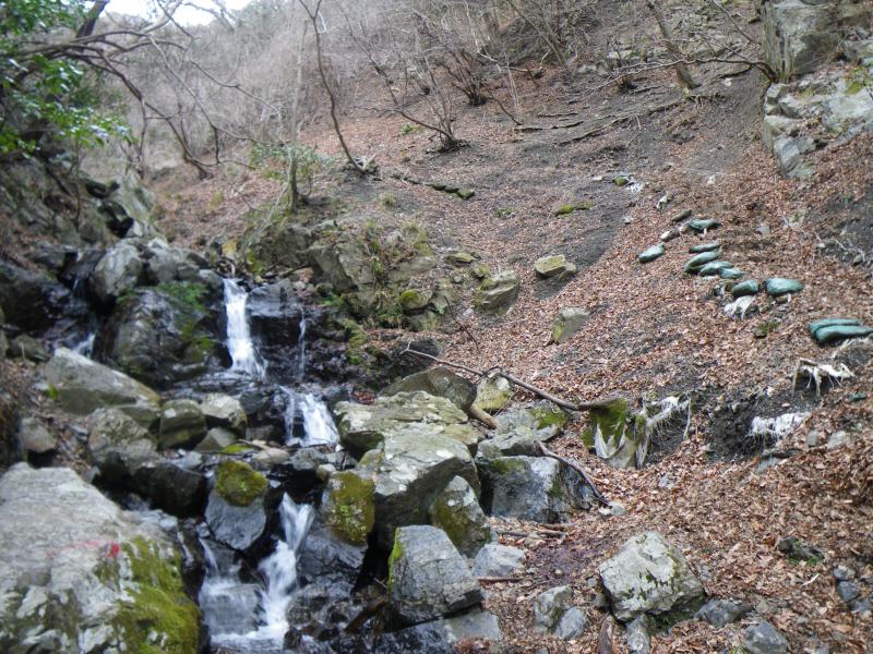 - 椿キャンプ場手前の河原(5分)通報ポイント1(26分)避難小屋(20分)福寿草自生地(20分)井戸谷分岐(4分)入道ヶ岳(5分)北の頭(1分)井戸谷分岐(56分)椿キャンプ場手前の河原