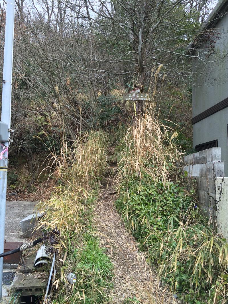 住宅地を少し歩いて、民家のすぐ脇にある登山道入り口から登っていきます。