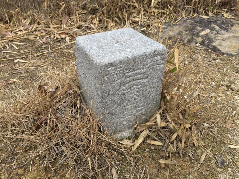 山頂の少し前に経塚古墳があり、ぽっかりと穴が開いています。