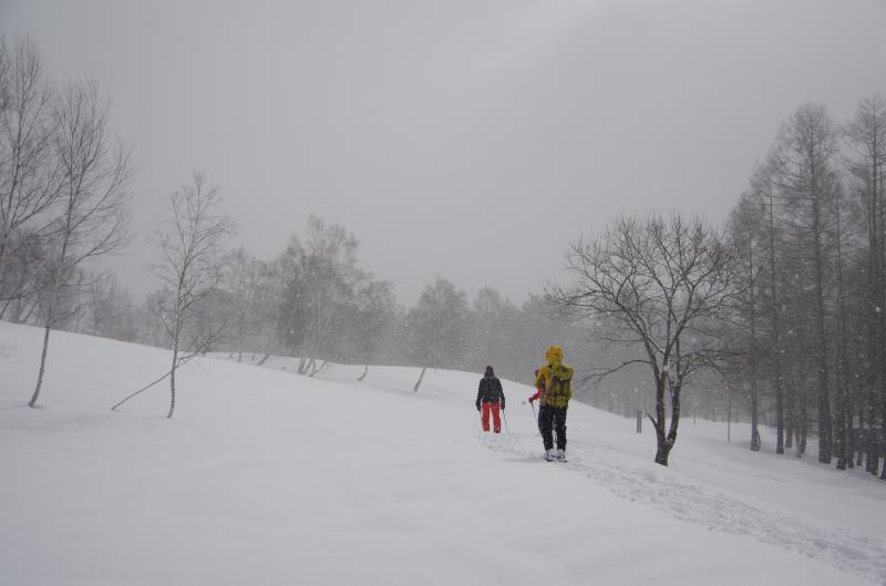 スキー場からはリフトで降りる予定でしたが、雪の為乗れず一番下までゲレンデを歩いて下りました。
