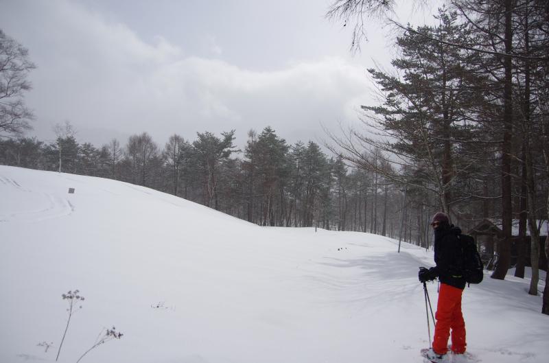 スキー場のパノラマコース沿いに歩き、途中開けている左側の尾根を下りていきます。