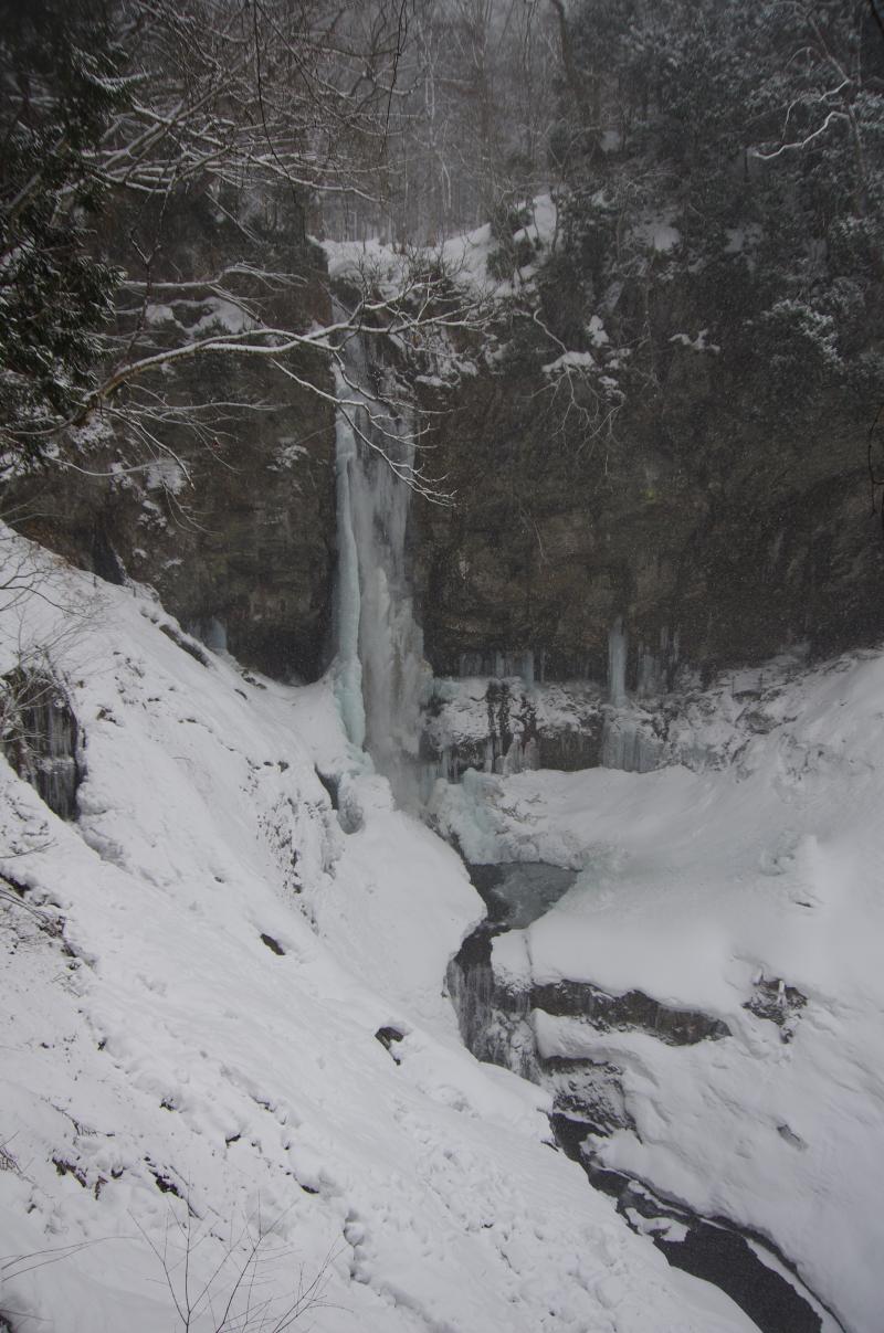 想像以上に大きな滝で、氷結した部分と、流れている部分があり轟音を響かせて流れ落ちていました!
