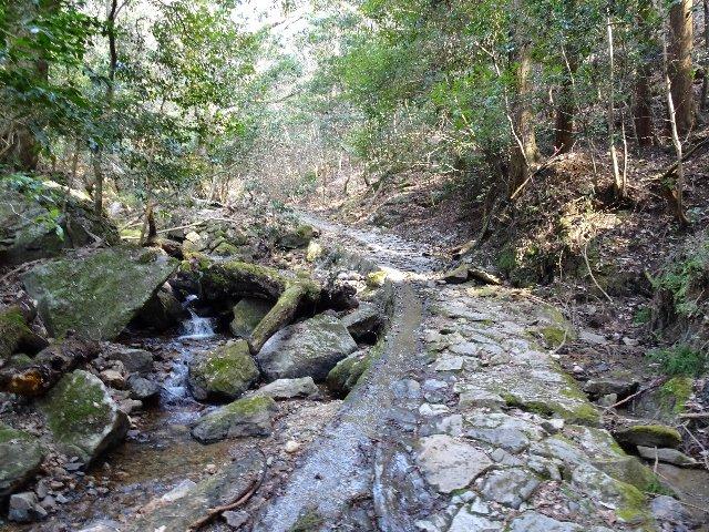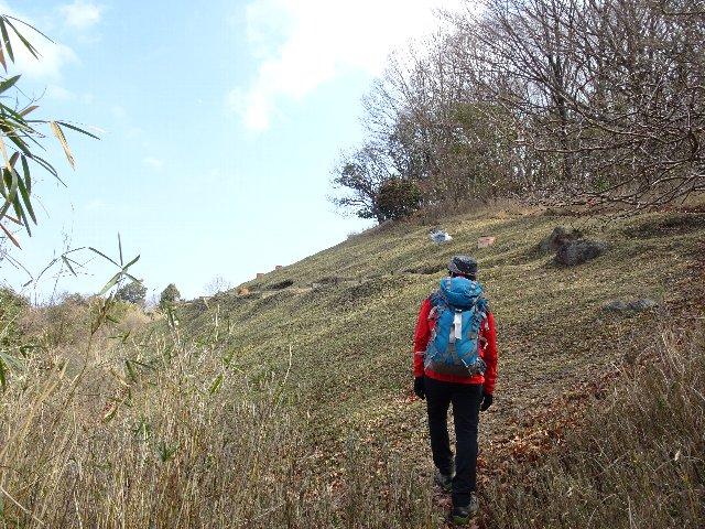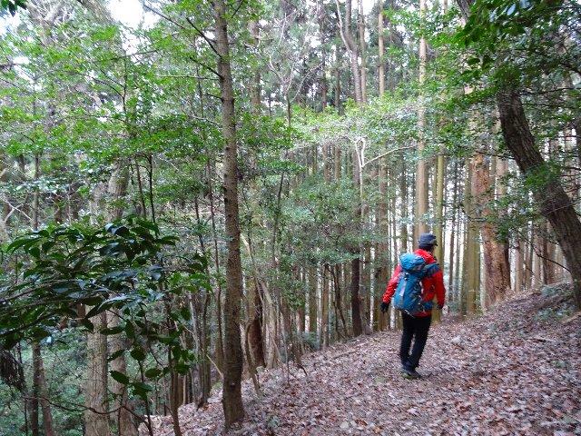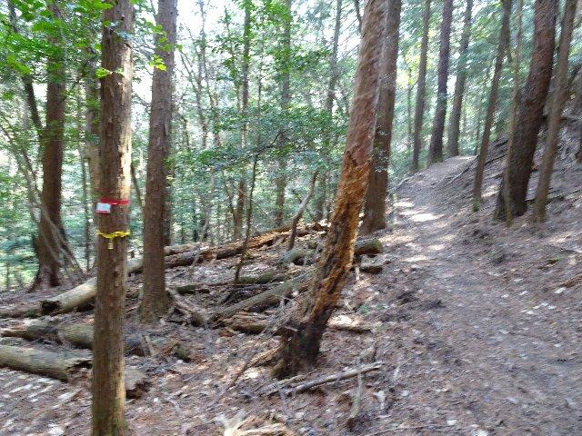 百毫寺三角点付近から滝坂の道に降りる道もマークが打たれ踏み跡が残っていました。