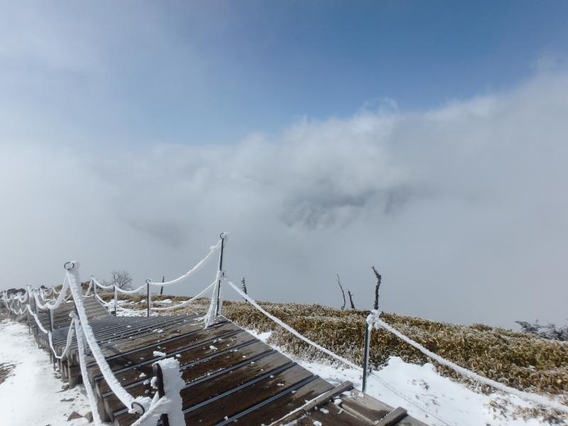 - 登山口まで行く国道438号線が雪と凍ってる箇所があったので、慎重な運転が必要です。