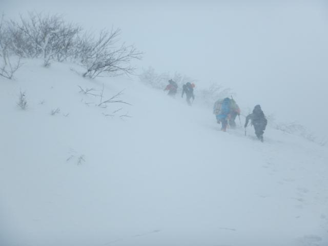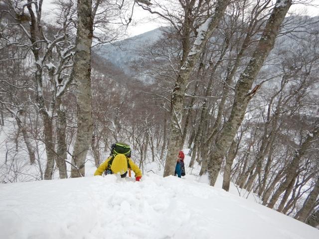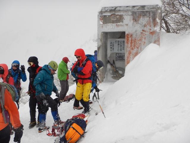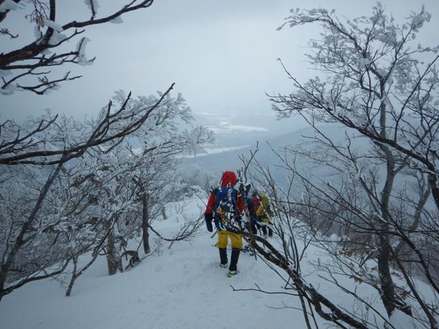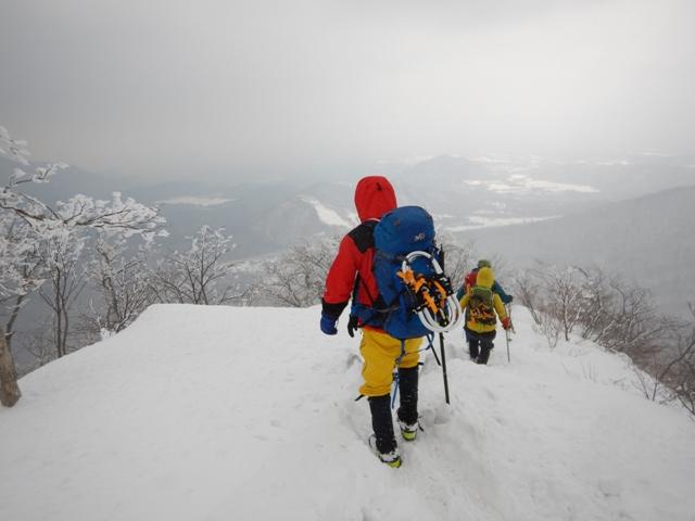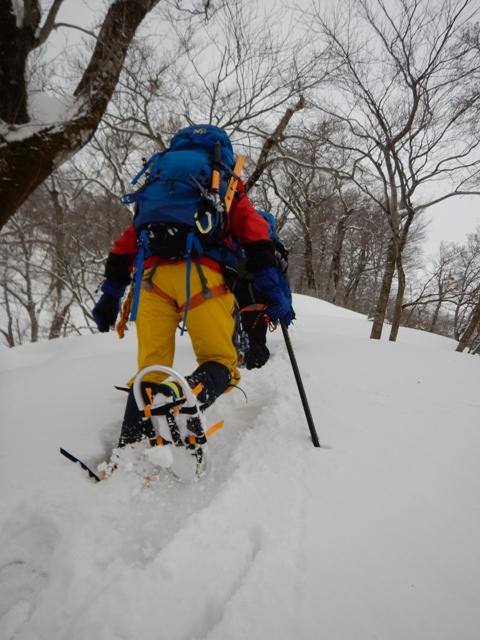- 昨日の積雪が20センチほどでした。元谷から六合尾根はワカンが必要です。