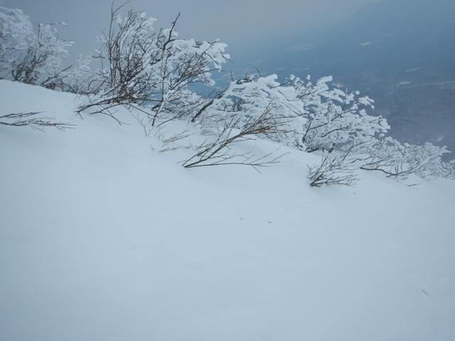 尾根を歩いているとところどころ空洞の穴になっており腰まで落ち込むところがあります。注意しながらゆっくり行きましょう。