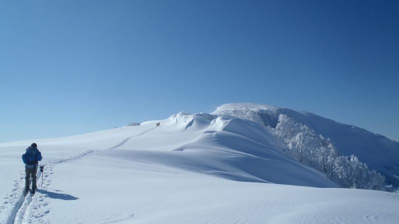 長尾山からはクラストしていることも多そうですが傾斜はないのでアイゼン・ピッケルなくても