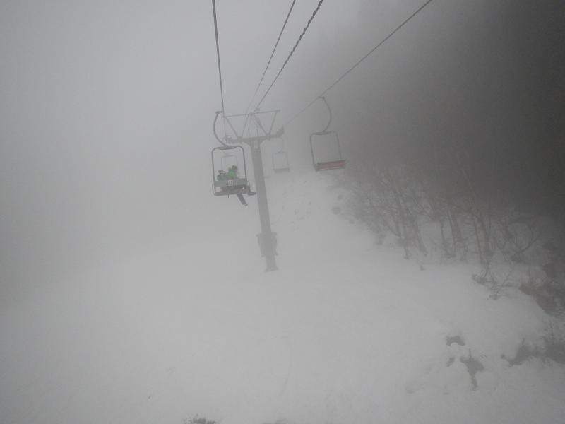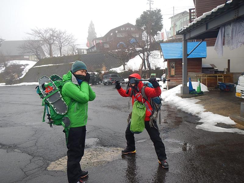 天気予報では麓は雨、昼からは雪になる模様とあったので山では雪だと信じてわかさ氷ノ山スキー場へ出発。しかし朝方駐車場(600円)についた時には予報どおりの雨・・・。