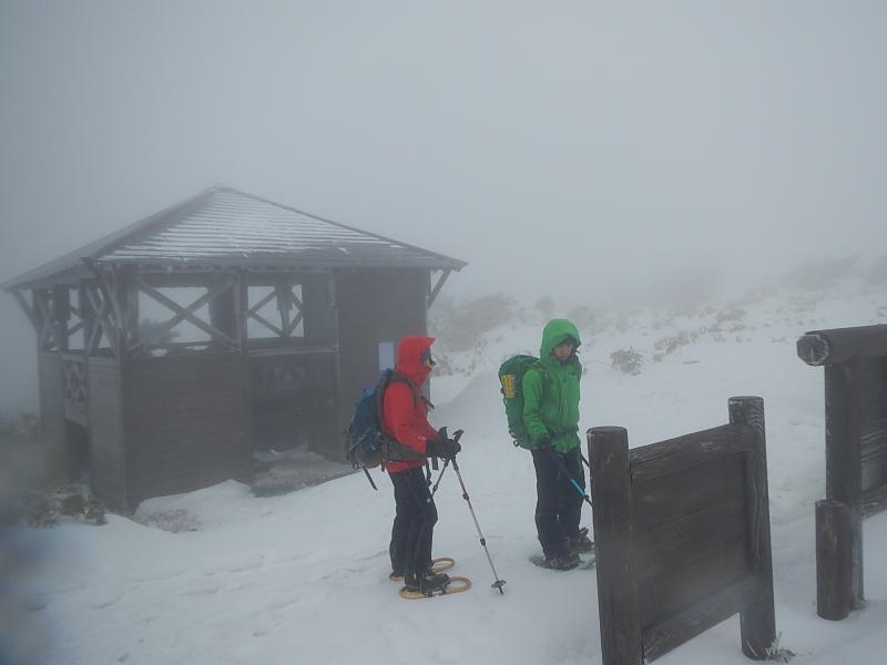 頂上の避難小屋で暖かい昼食を食べ体を温めてから氷ノ山越経由で下山しました。下山後は「氷太くん」でお風呂(500円)に入りましたが、さっぱりして外に出るとそこは雪景色になっていました。