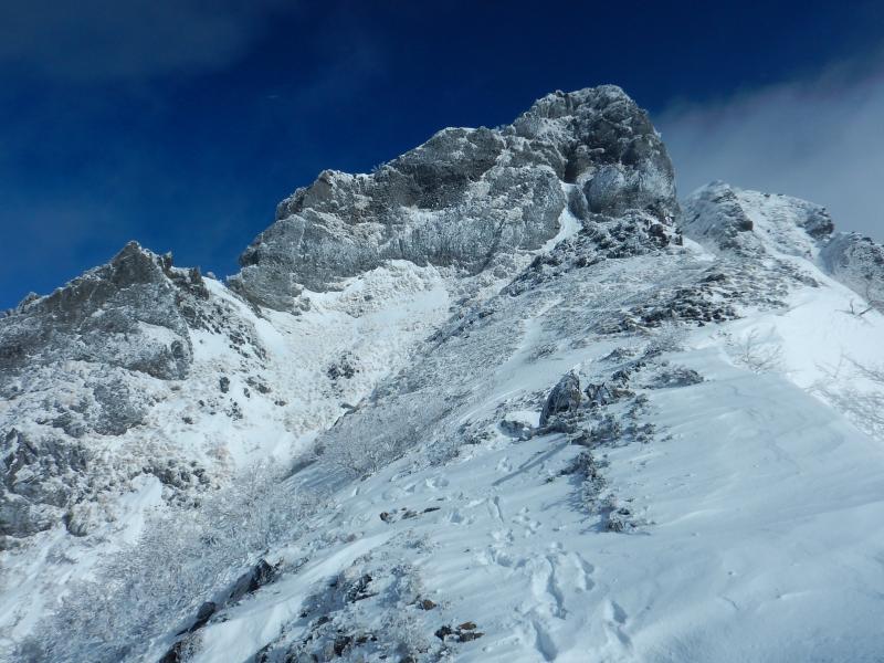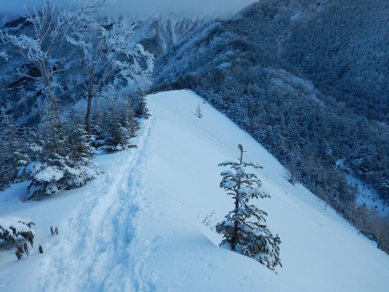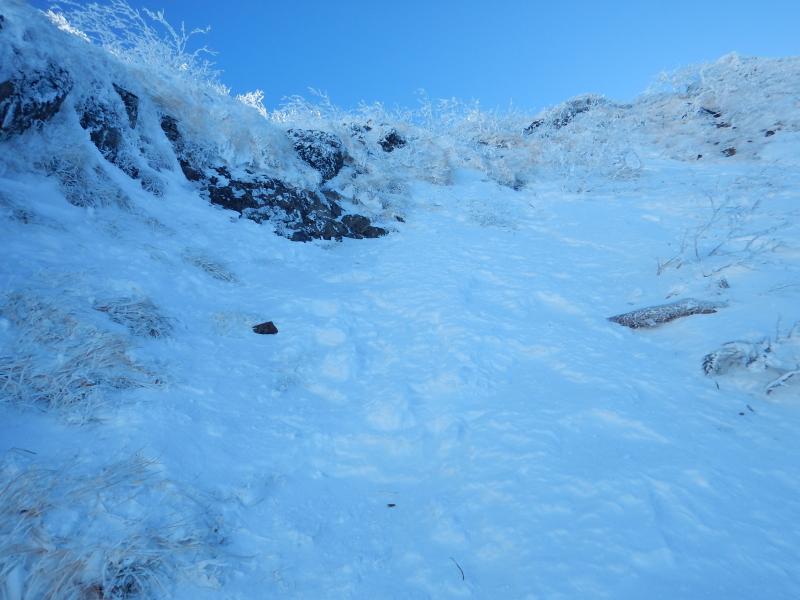 あとは顕著な御小屋尾根に向かって下っていくだけですが、結構急な上、凍結個所もあるので要注意です。
