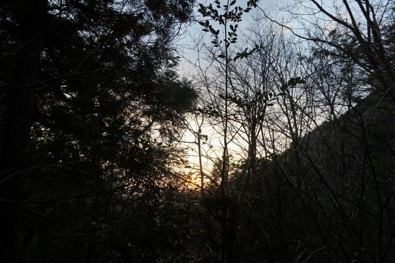 樹林帯の中で太陽を見送り、ゆっくりと闇に包まれる登山道に少しドキドキしました。