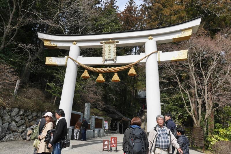 まず宝登山神社にお参りをして、奥宮に向かいます。ロープウェイに行く途中の道を右に進むと整地された登山道になっていて、40分ほど歩くとロープウェイ山頂駅前に着きます。ちいさな子どもを連れた親子や、梅を見に来たカップルなどが春の休日をたのしみながら歩いていました。