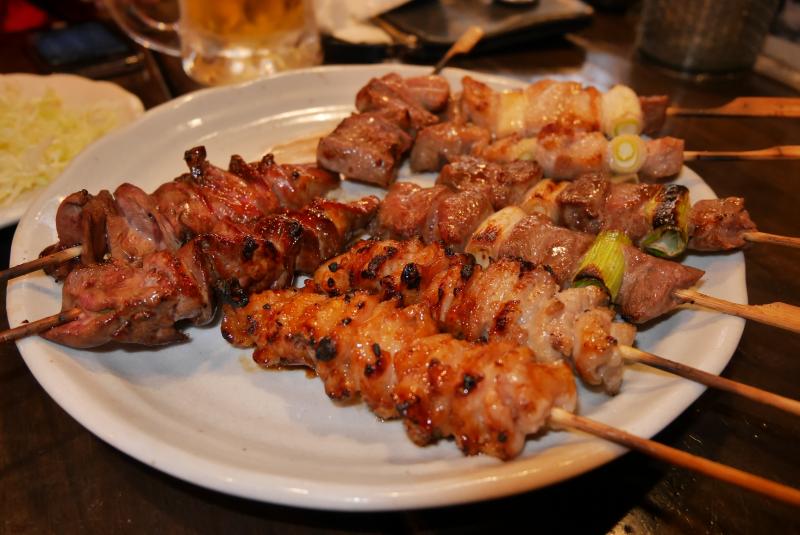 ヤキトンはねぎが刺さっていて黒豚は脂がのってジューシー、カシラは赤身らしくほどよい歯応えで、タンはねぎなしで弾力のある一品。味噌ダレが抜群に合う。鶏串は前述の通り甘めの醤油タレでこちらも焼き具合、大きさ、味、すべてのレベルが高い。