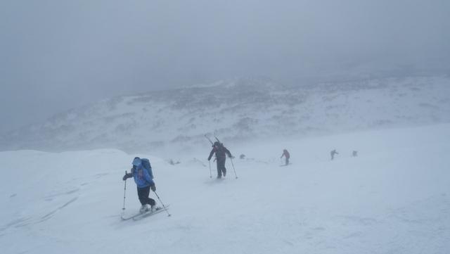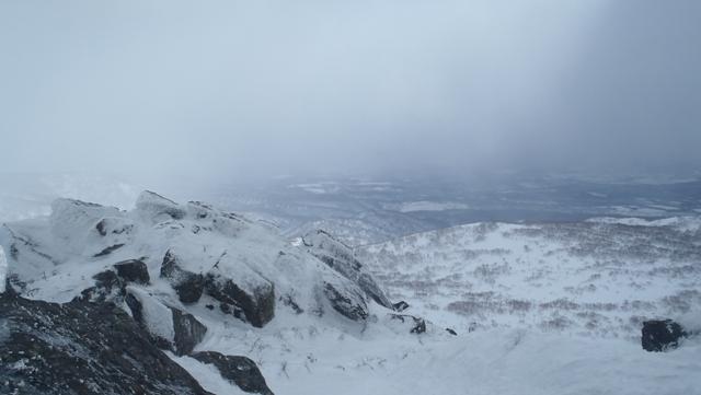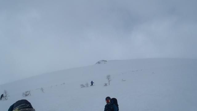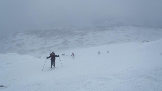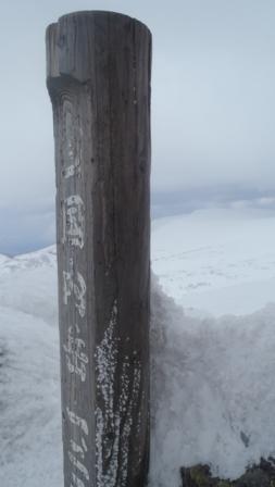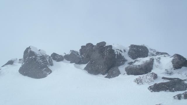 上部はクラスとしていることが多く、状況によってはスキーアイゼンがあると楽ですし、アイゼンを持っていったほうがいいと思います。頂上部には岩塊は巻くようにつめて頂上へ。