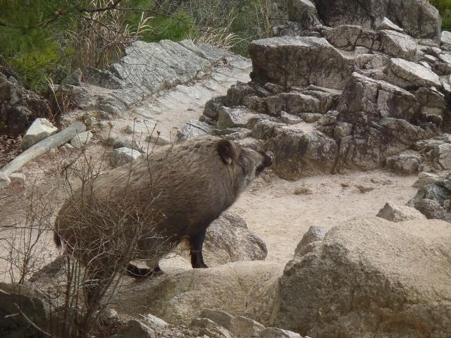 このルート全般にイノシシが出没しますので、食事をする時は注意が必要です。