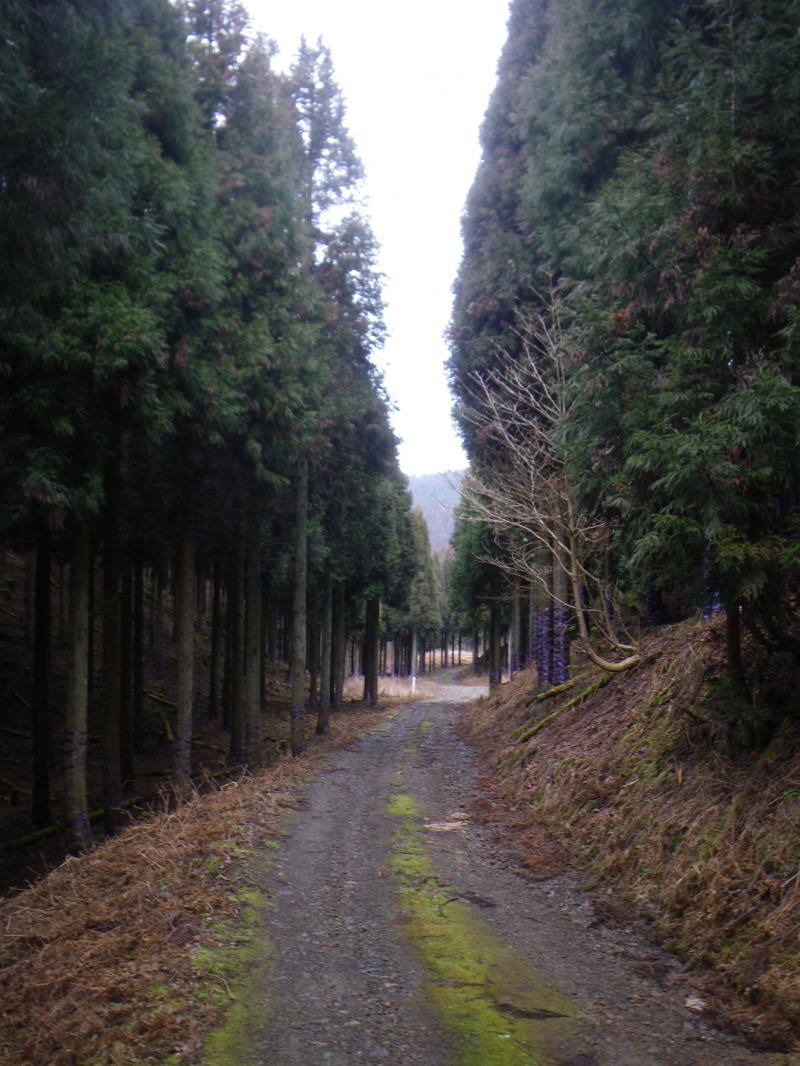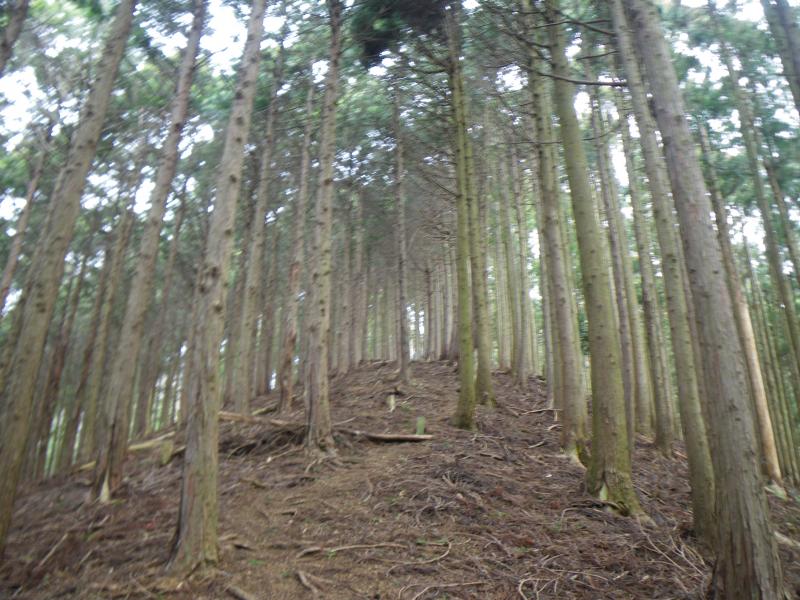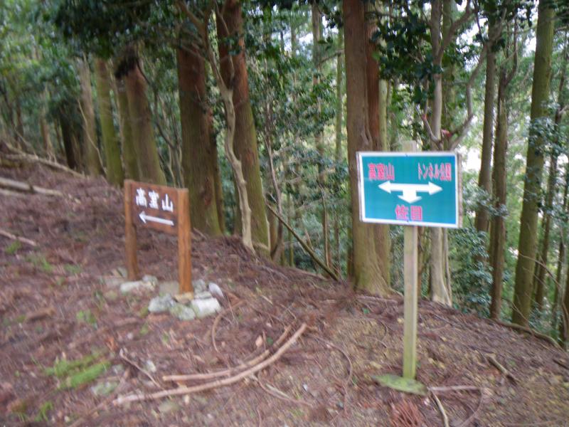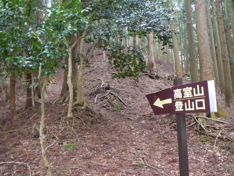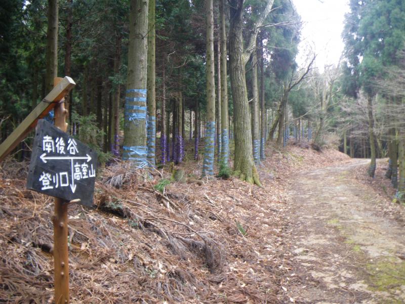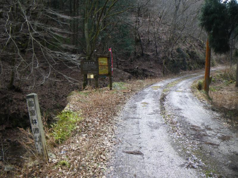 ⑤高室林道に出ると標識通り、しばらく林道歩きで、山頂手前で登山道に変わります