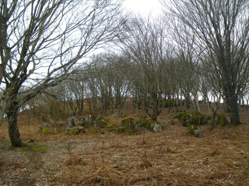 この山に登るには南後谷から登るのが一般的のようですが、コースが長くなるので、十二相神社からの佐目コースから登りました。このコースは破線のようですが、標識はしっかりしていて、迷いません。迷うとすれば、林道に出てからでしょうか。高室山の先にある倉骨山(くらほねやま・806m)まで足を延ばしてきましたが、高室山の出城のような感じで張り出していて、ここも展望は良いので、オススメします。