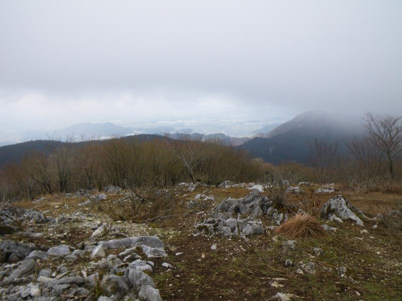 高室山(たかむろやま・818m)はこの付近を代表する石灰岩のカルスト台地を形成する山で、山頂からの展望は鈴鹿北部主稜線や琵琶湖を一望する360度パノラマです。実は山頂近くには高室林道が走り、車で行けばすぐに終ってしまう山です。