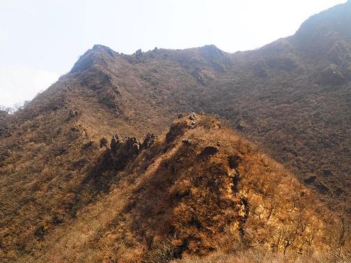 鎖場を何度か登りまずは西峰へ、ここから少し下り東峰の岩場を抜けます。