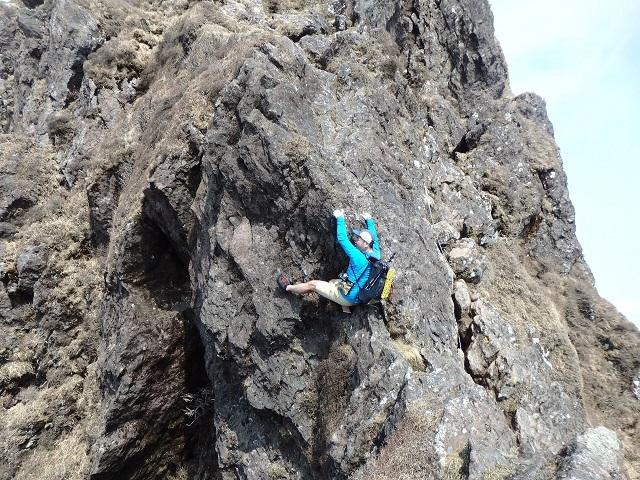 ここが楽しい!慎重にスリル感を味わいながら、細い岩場を歩き東峰に。