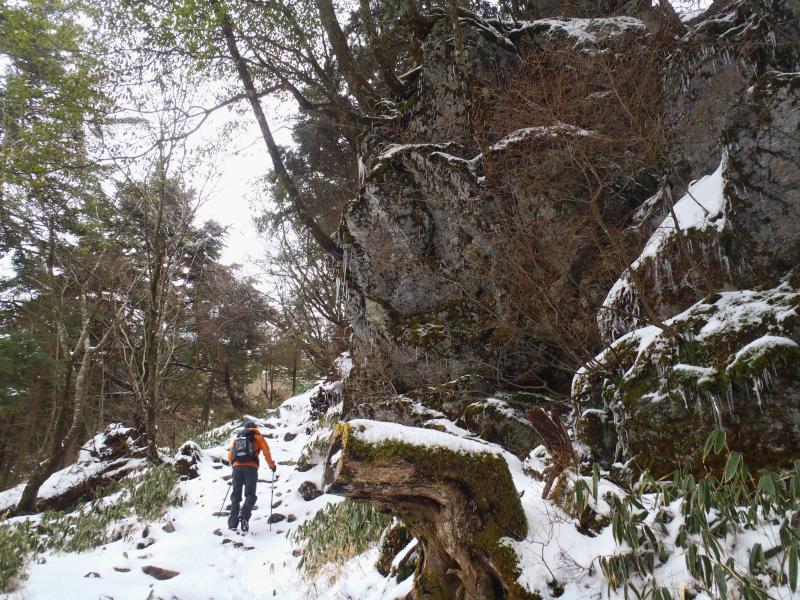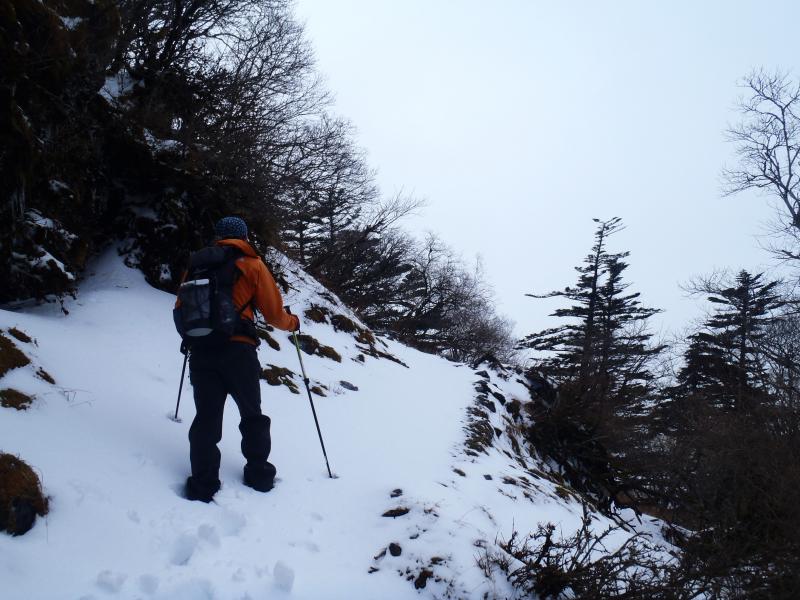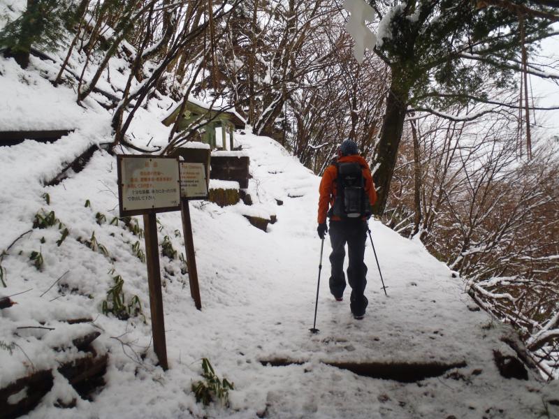 積もりたての雪と、階段の岩が混じって多少歩きにくい。