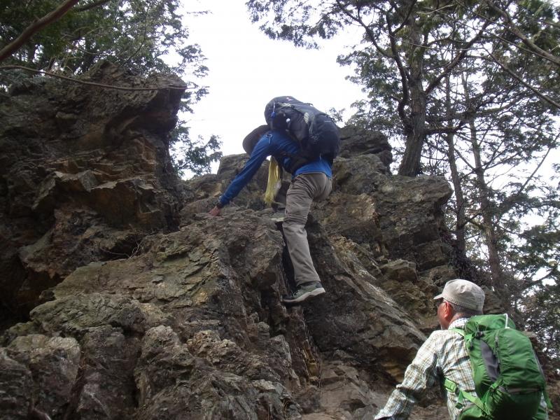 古賀志山から御岳山までも岩場・ハシゴのルートを選び、ワクワクとドキドキの連続でした。
