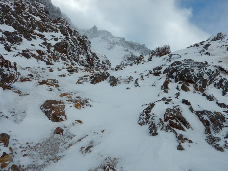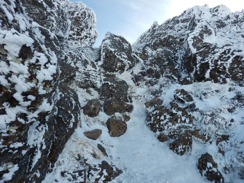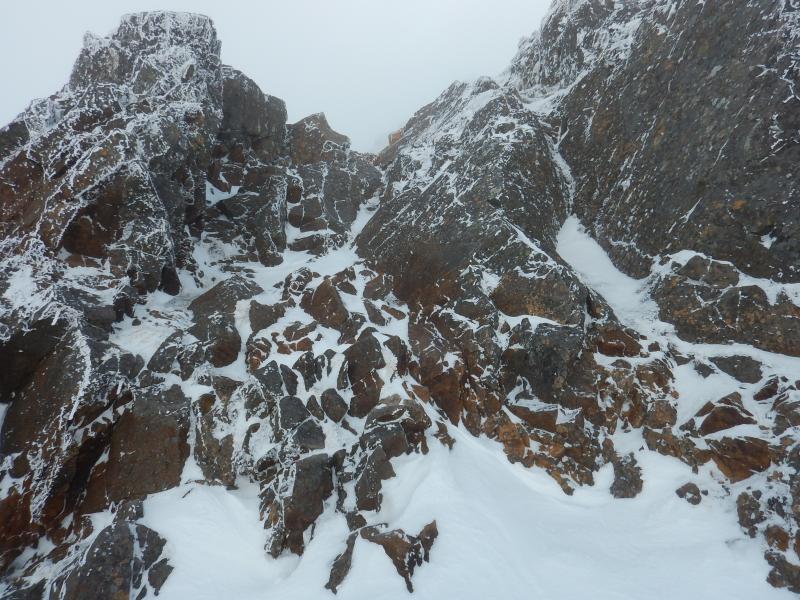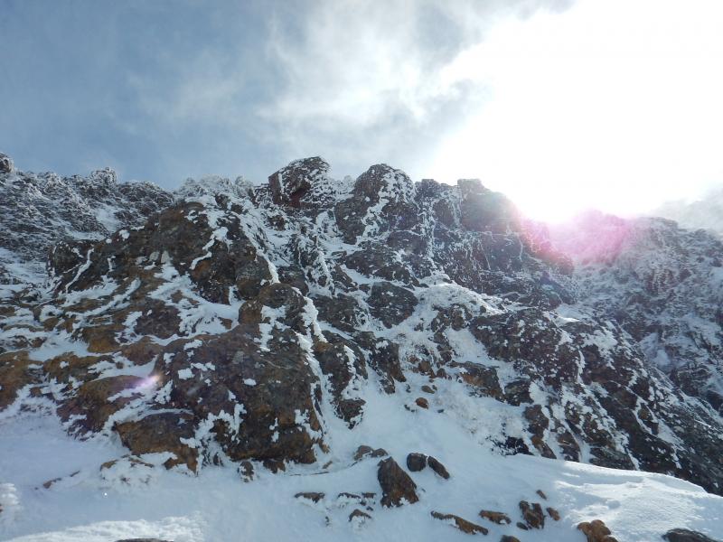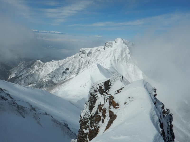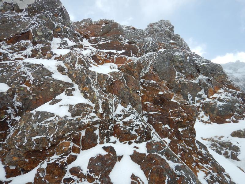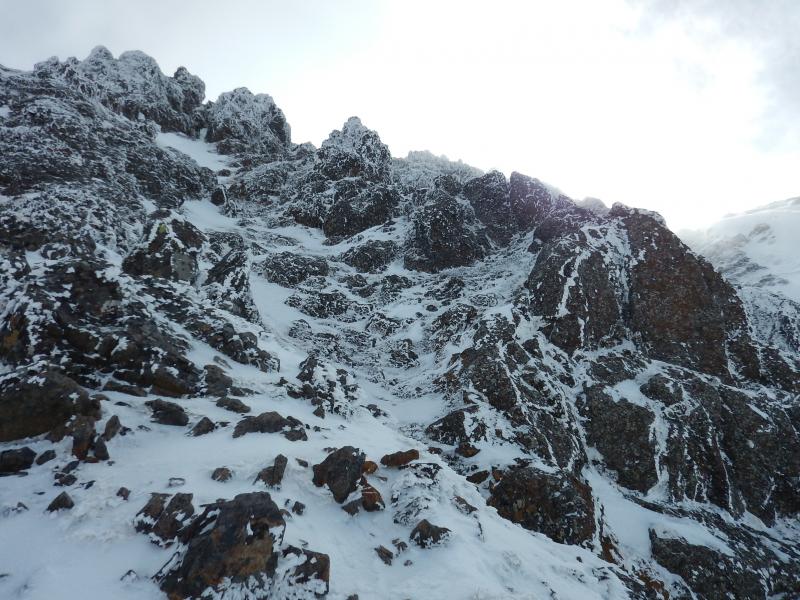 いくつか小岩壁を登ったが、緊張したのは二つ目の垂直のコーナーと、最後のチムニー。特にチムニーはザックが引っかかるしホールドは埋まってるしで結構手間取った。