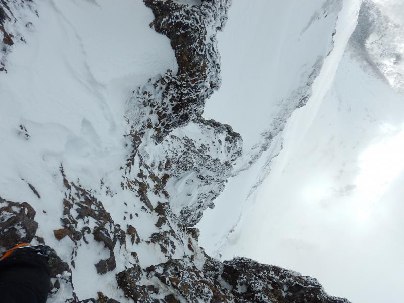 CSを超えるとそのまま凹角を直上してから右上するが、吹き溜まりがいやらしくついていて緊張した。