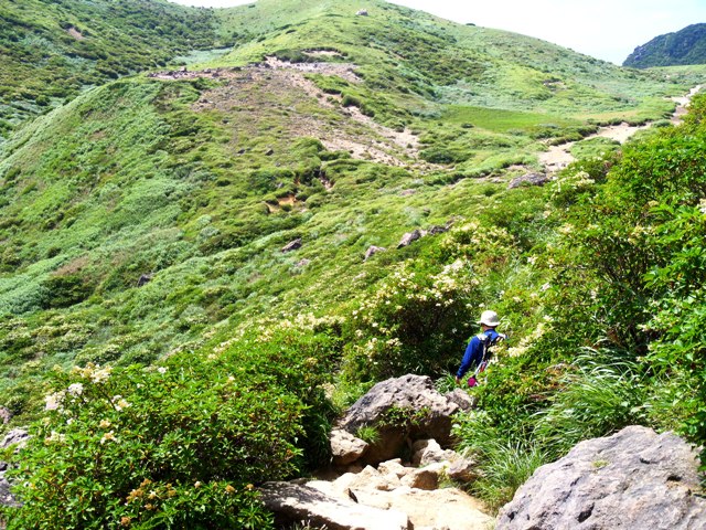 阿蘇山、祖母山と違って標高1700m前後でアルプスの稜線歩きを思わせる展望のよい山でした。