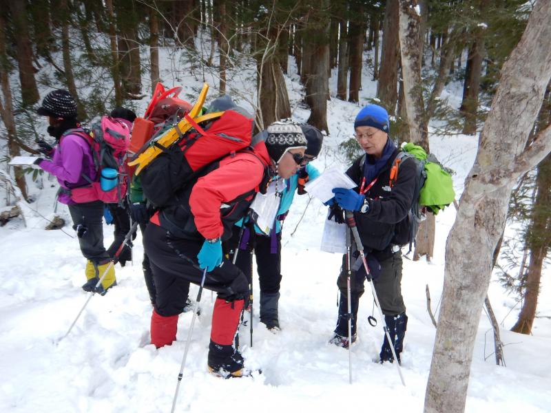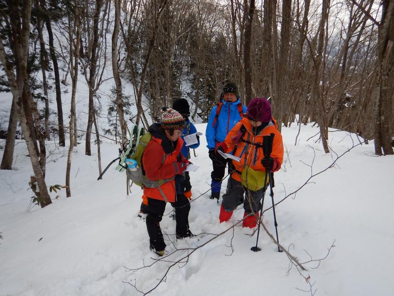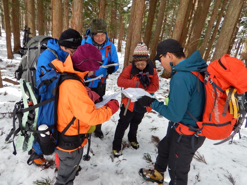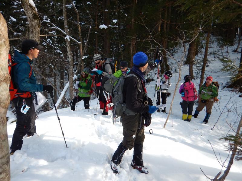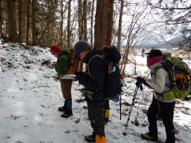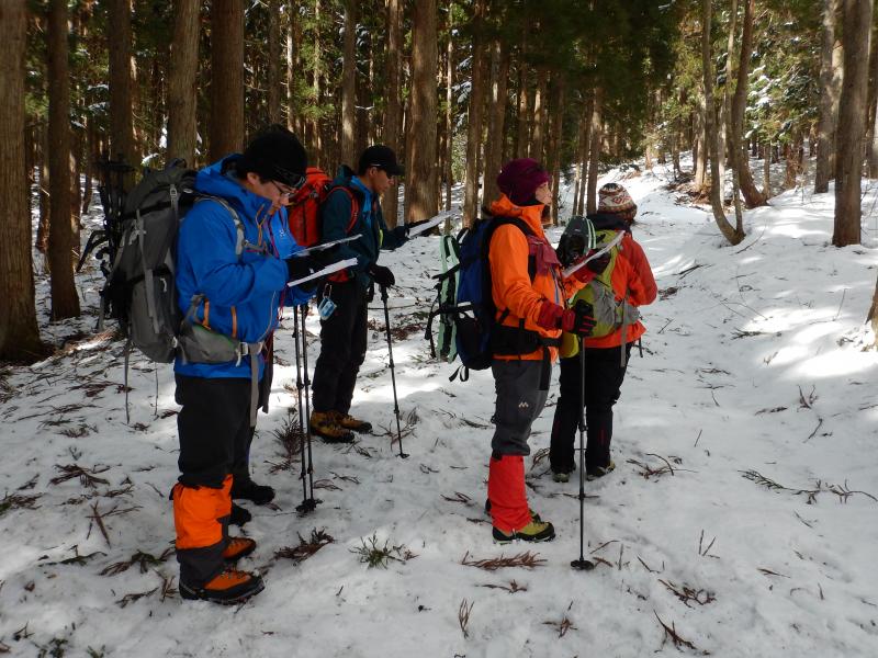 地形を読む、コンパス、植生、リスクを避けるルート取り、ホワイトアウト時の対応等を学んでいただきました。