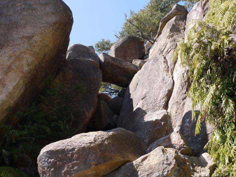 ・キャッスルウォールから荒地山:岩梯子から上部は巨岩が露呈する岩場です。落石、スリップに充分な注意が必要です。