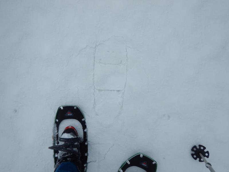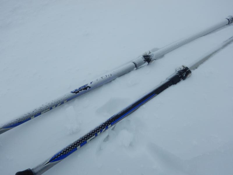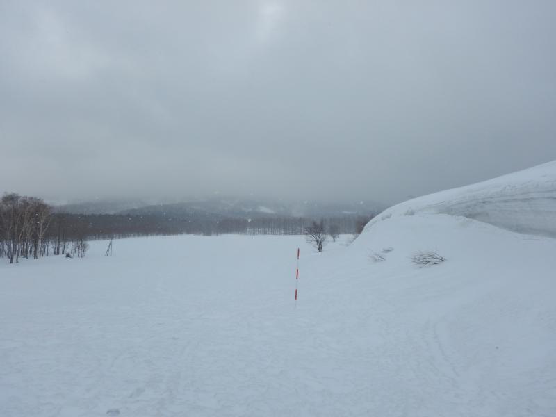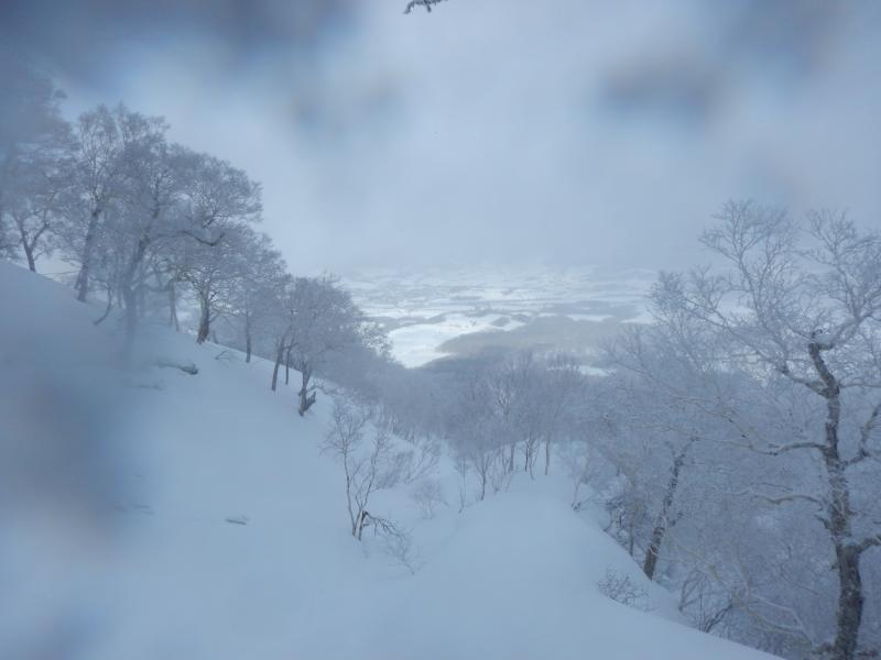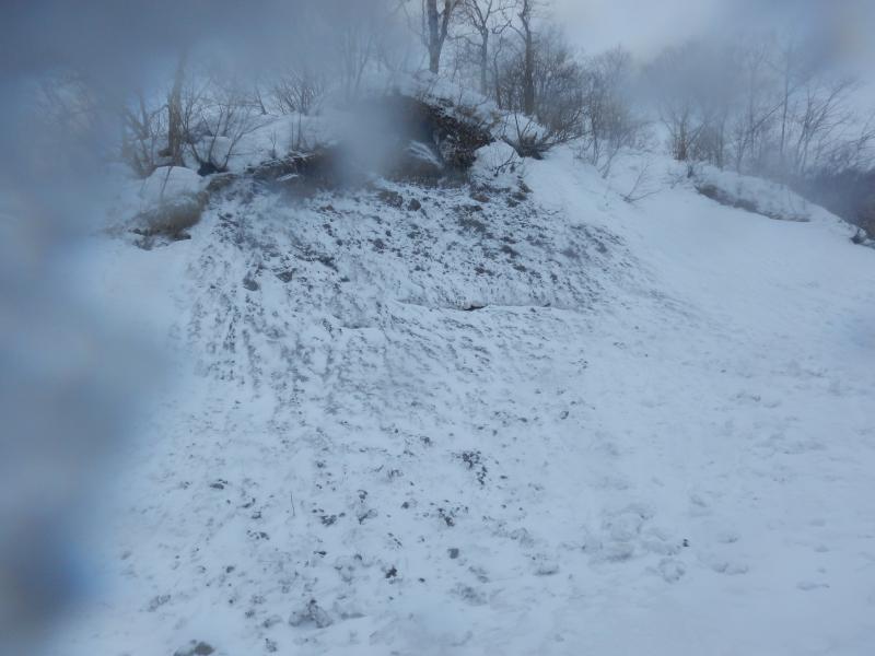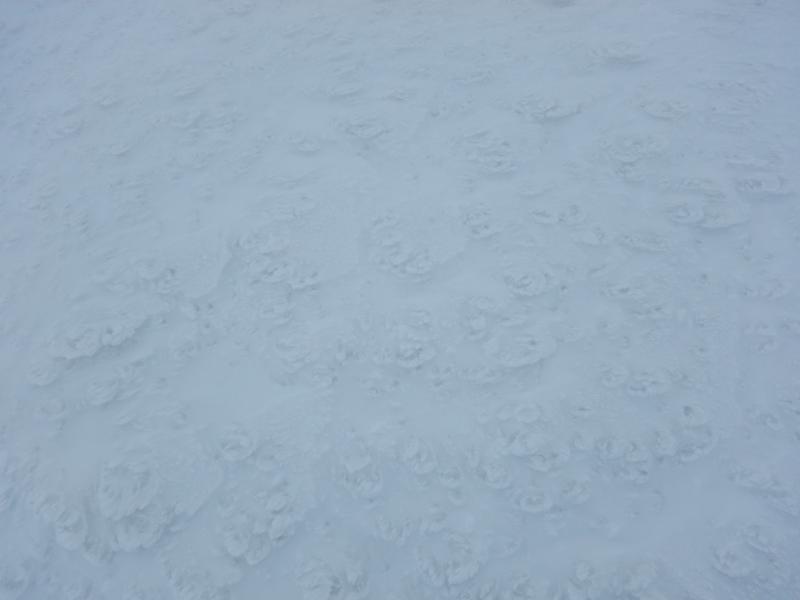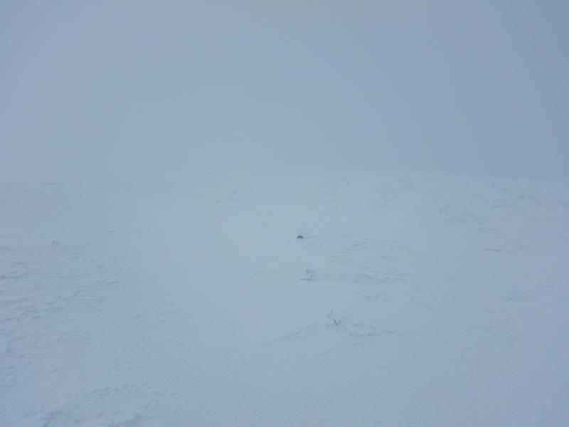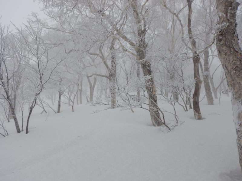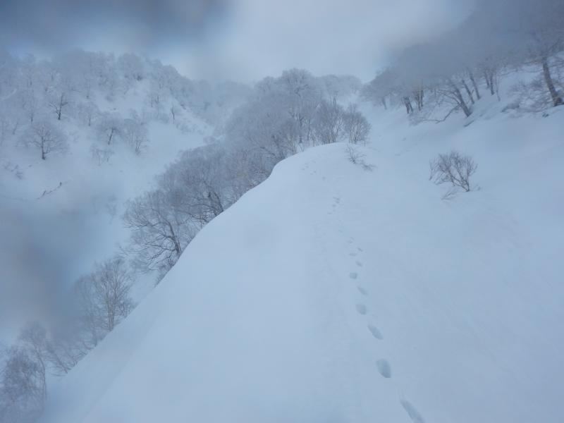 2度目の下山中はホワイトアウト。足元しか見えない中とりあえず下へ下へ降ります。