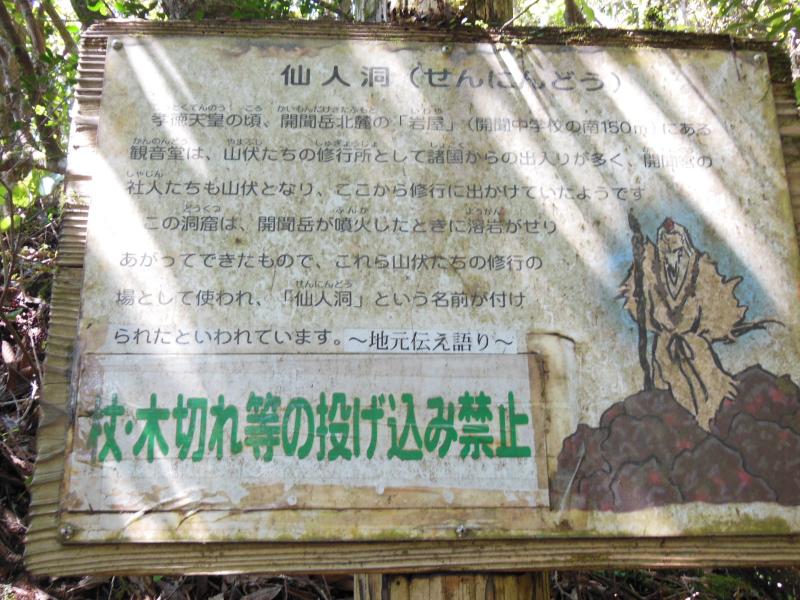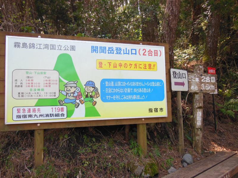 - かいもん山麓ふれあい公園(10)二合目登山口(40)五合目(35)仙人洞(35)開聞岳山頂