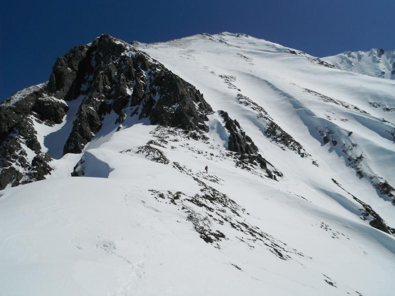 初級者から中級者向けとされていますが、標高差1000m以上、稜線上の強風、氷化斜面、状況によっては気の抜けないルートになります。