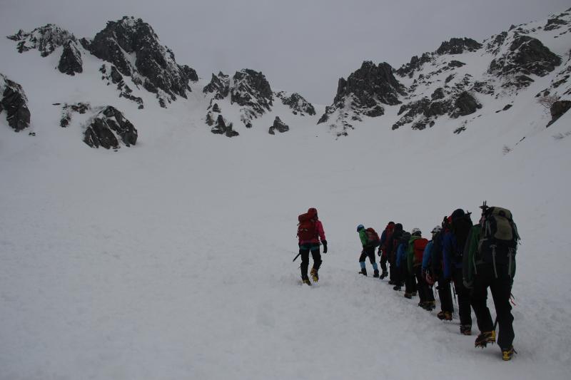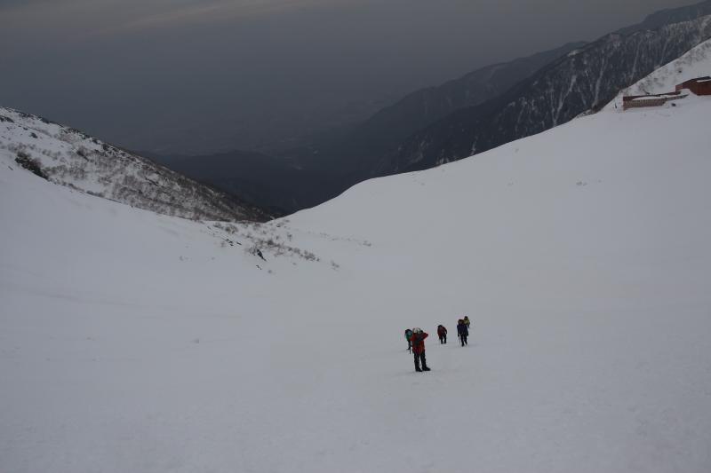 下ってきて、カール下部で 皆様はそりをして楽しんでおりました。
