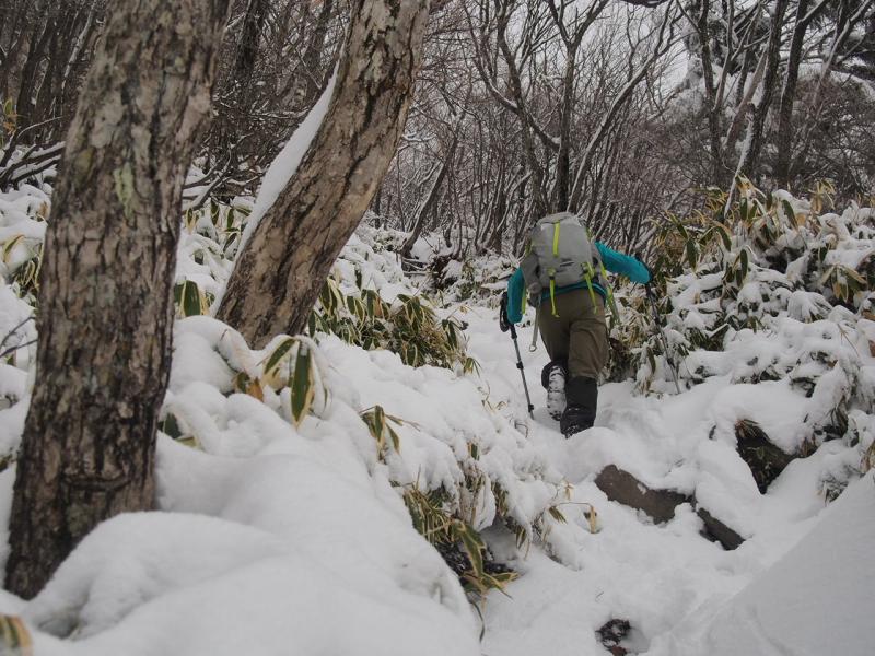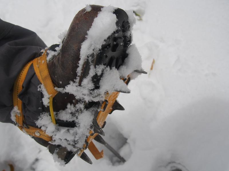 自分はチェーンアイゼン、同行者は6本爪アイゼン