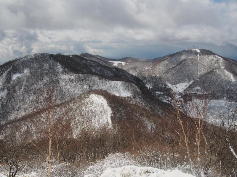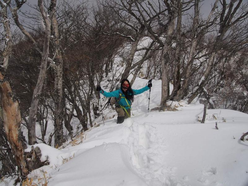 気を取り直して駒ケ岳まで縦走。見る見る空は青空になりちょっと待っていればよかったと後悔(笑)下りはチェーンアイゼンをつけて先行者のいないモフモフのノートレースの雪面を楽しみました♪
