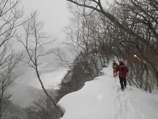 ④オットセイ岩から先は急になりますが、今回はスノーシューのような大きな階段状のトレースがあり、傾斜がゆるい気がしました。