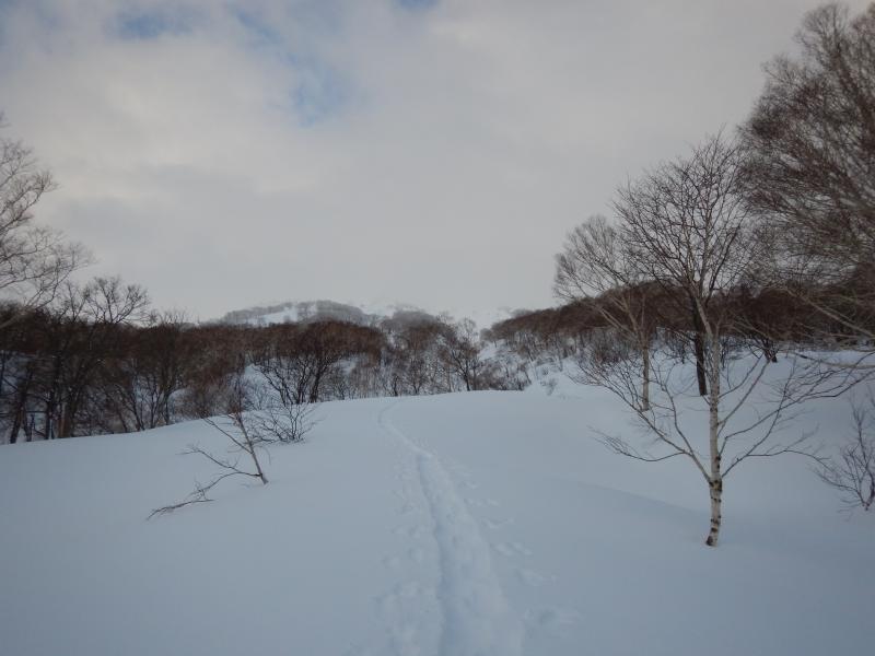 前回はスノーシューを使用し、今回は終始アイゼンで登りました。