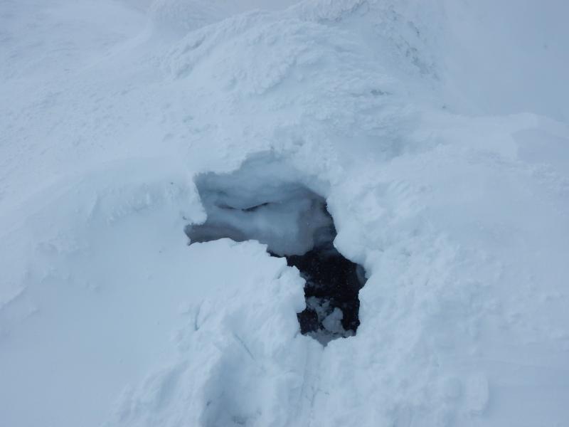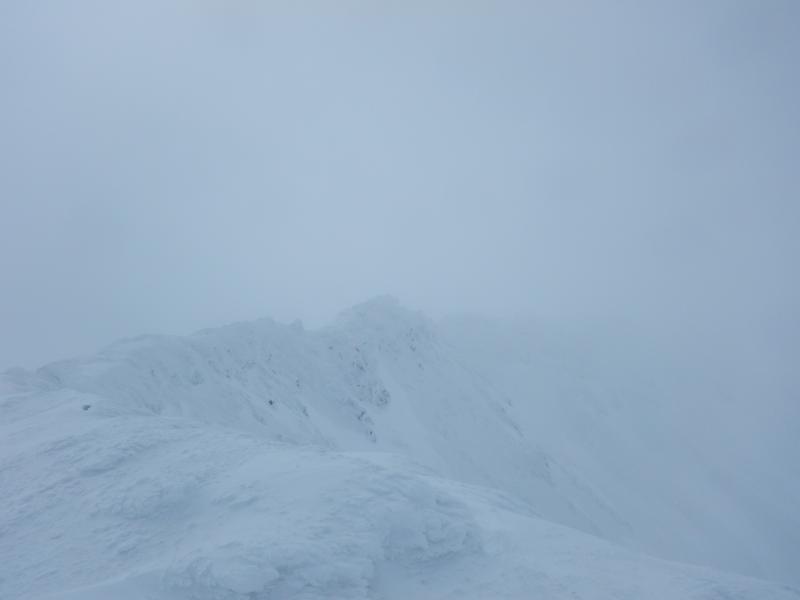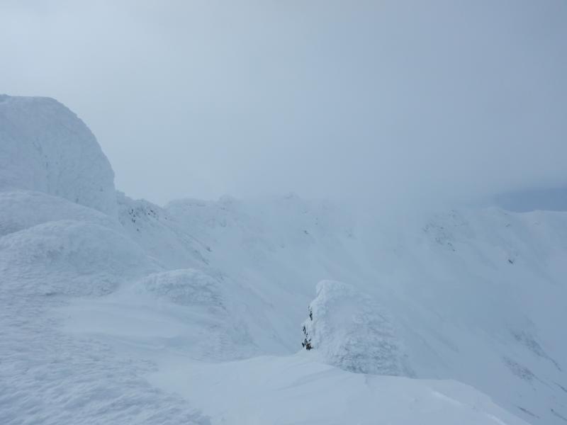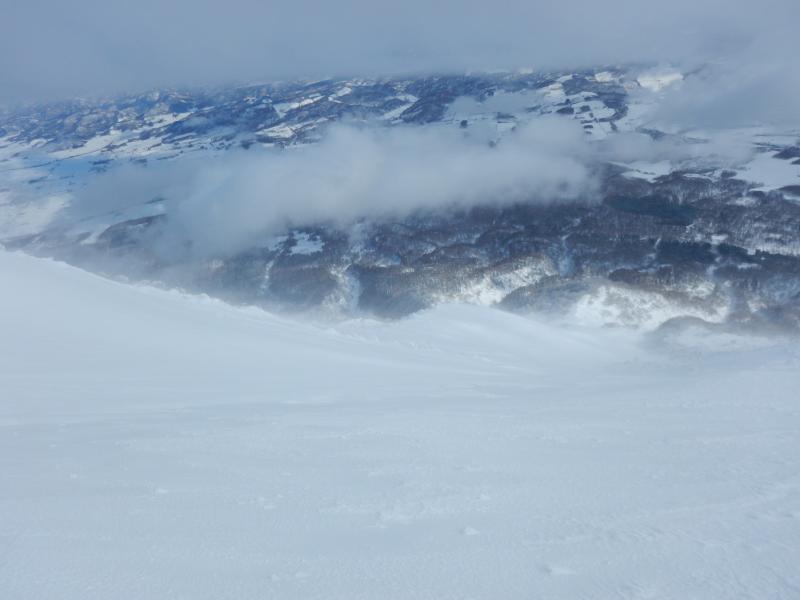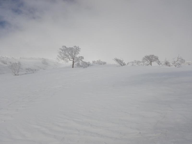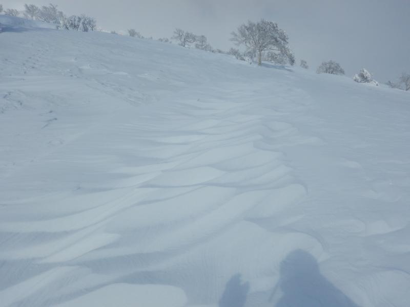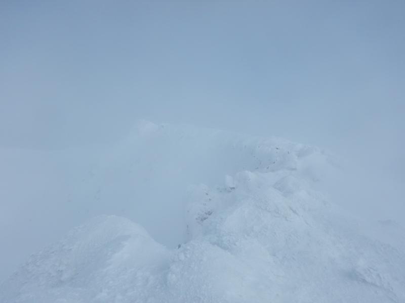 所々にある柔らかい雪の塊を交わしつつ、嫌な予感を胸に秘め山頂まで向かいましたが…