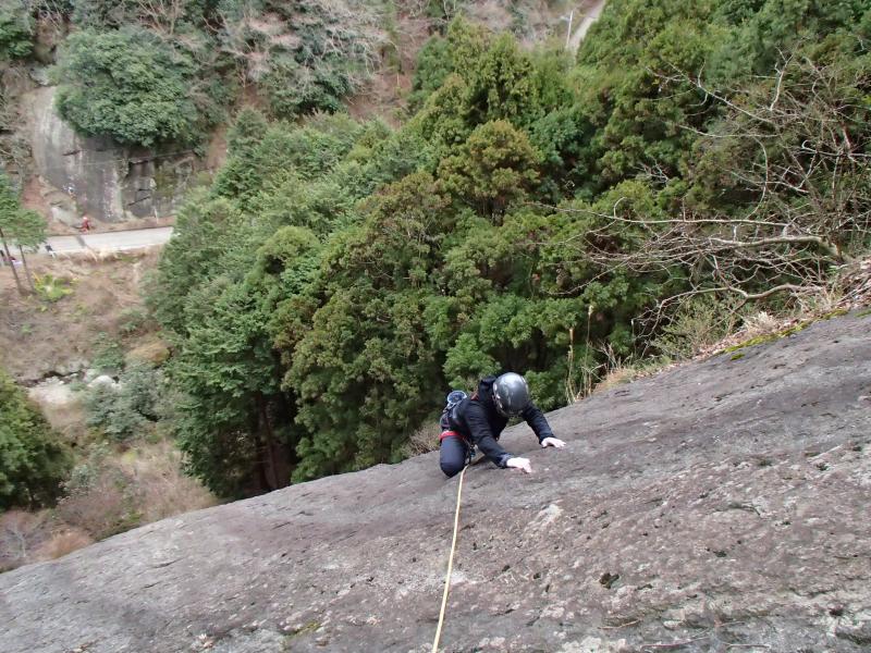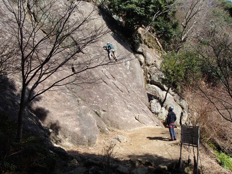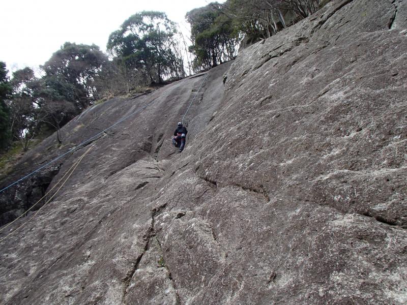 壁は全体的に傾斜がなく、下地も安定しているので、外岩デビューの方やマルチピッチの練習、冬山シーズン前のアイゼントレーニングに良く使われる岩場のようです。所々に難しめのルートもあるので一日中楽しめました。