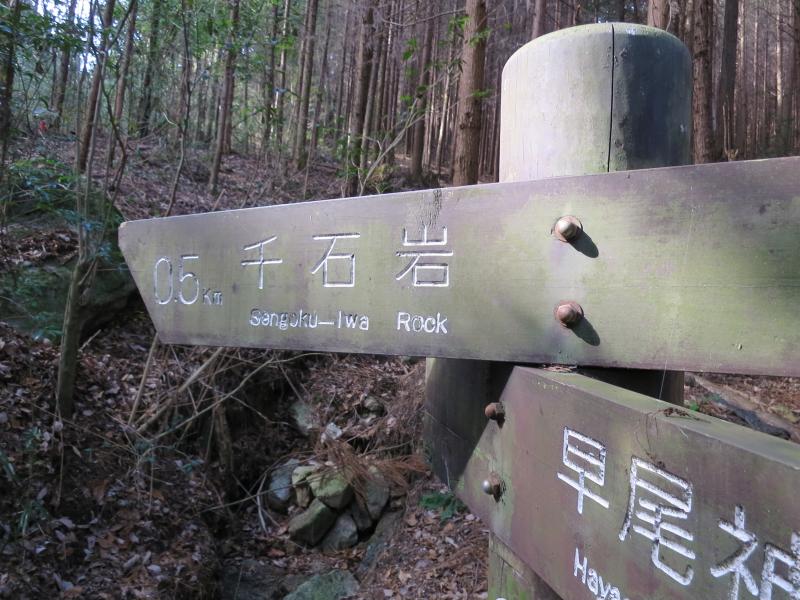 - 駐車場=5=早尾神社=15=千石岩=15=駐車場