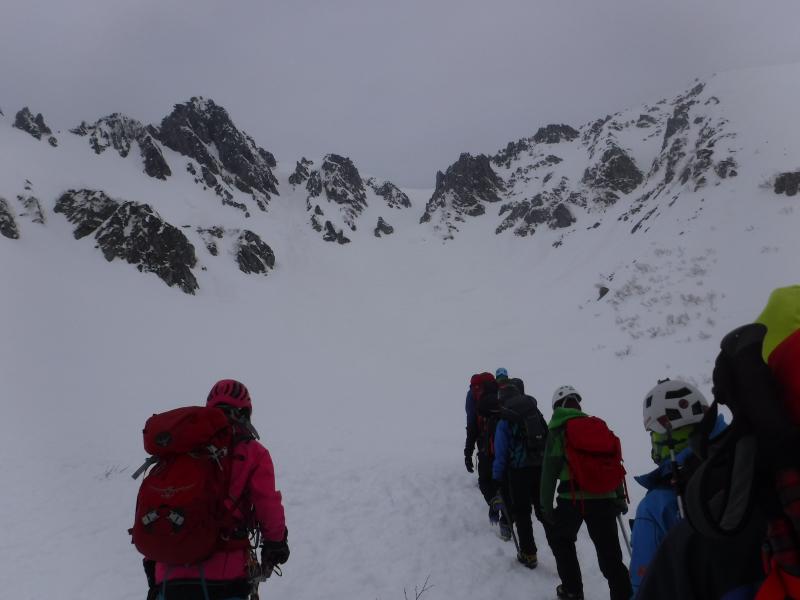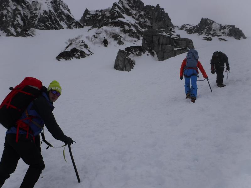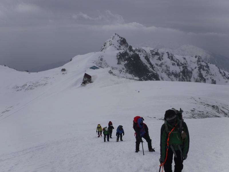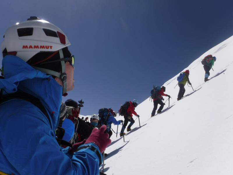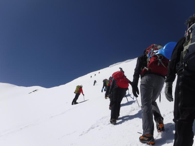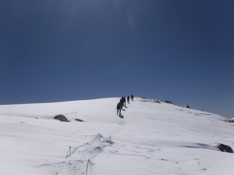 ピッケルで確保を取りながら、アイゼンを効かせて登ります。
