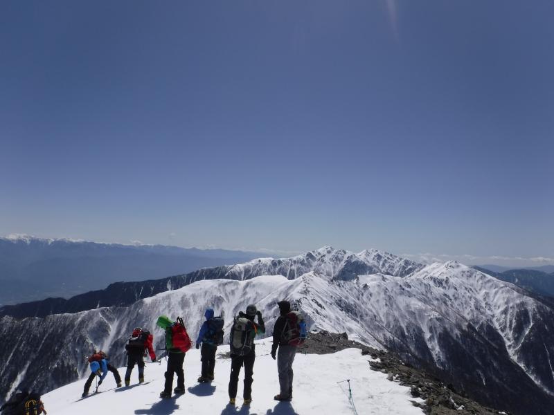乗越から木曽駒ヶ岳山頂までは雪上ハイク。