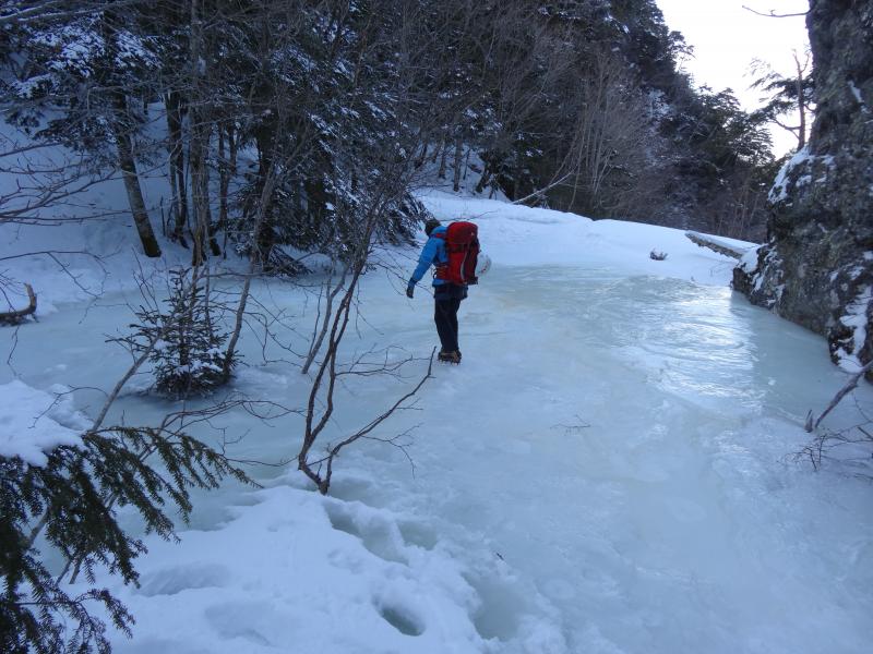 - 今年は雪が非常に少なく、南沢では雪の下にある氷が露出しておりアイスバーンになっております